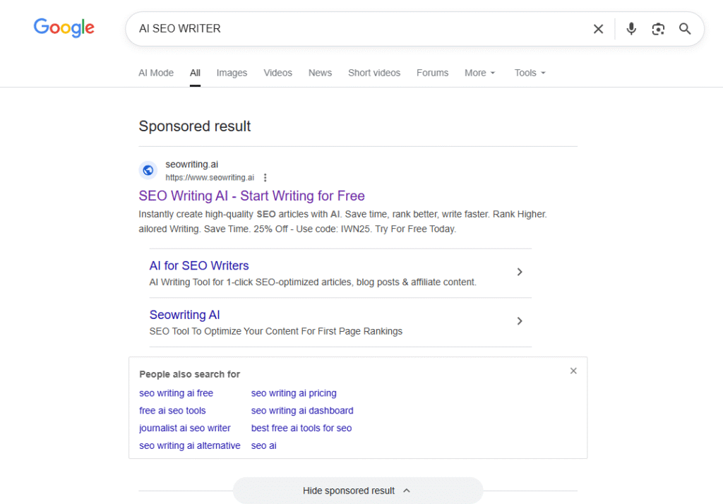 AI Writer understands very well what is being searched for, whether people are looking for information or want to buy something.